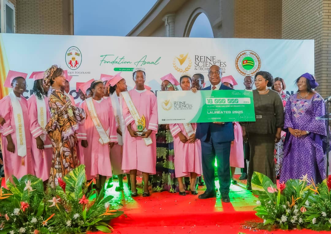 L’édition 4 du Concours Reine des Sciences et Technologies a connu son apothéose mardi 17 février dernier au siège des élus du peuple.Conduit par un jury indépendant en présence d’un huissier de justice, Blessing Gamba Dalouba a été élue Reine de cette édition sur les 15 lauréates retenues.Une enveloppe financière de 16 millions a été mobilisée pour l’ensemble des lauréates répartie comme suit : 5 millions de FCFA pour la Reine, 3 millions de FCFA pour la première duchesse, 2 millions de FCFA pour la deuxième duchesse et 500 000 FCFA pour chacune des 12 lauréates restantes.Organisé par la Fondation Asaal avec l’appui du ministre de l’Éducation nationale et de l’Assemblée nationale, ce concours a connu la présence du Professeur Komi Selom Klassou, Président de l’Assemblée nationale, de Hadja Ibrahima Mémounatou, Présidente du Parlement de la CEDEAO, de Mama Omorou, ministre de l’Éducation nationale, , présidente de la Fondation Asaal, Abira Bonfoh et de plusieurs personnalités civiles, traditionnelles et administratives. Reine des Sciences et Technologies est un concours qui vise à promouvoir l’excellence, révéler les talents féminins et affirmer la place déterminante des jeunes filles dans les secteurs scientifiques.Pour la présidente de la Fondation Asaal, Abira Bonfoh, cet événement est non seulement une question de promouvoir les jeunes filles brillantes, audacieuses, déterminées, capables non seulement de réussir mais aussi de renforcer la recherche, d’éclairer la décision publique et de contribuer à la souveraineté de notre État et au-delà, de toute l’Afrique. » L’avenir scientifique de nos nations ne peut se construire sans les femmes. Depuis sa création, ce concours ne vise pas seulement à récompenser des performances académiques, il ambitionne de poser les fondements d’une communauté scientifique consciente, engagée et responsable. Une communauté capable de décoloniser les savoirs, de promouvoir une pensée critique endogène et de mobiliser la recherche scientifique pour faire émerger des sociétés autosuffisantes, libérées des dépendances intellectuelles et structurelles « , a-t-elle déclaré. Le ministre de l’Éducation nationale, Mama Omorou a posé avec lucidité la réalité des sciences, des technologies, de l’ingénierie, des mathématiques, en lien avec la place des filles au Togo comme ailleurs. » À l’échelle mondiale, les chiffres sont sans appel car les femmes ne représentent aujourd’hui que 35% des étudiants dans les filières Science, technologie, ingénierie et mathématiques et seulement 29% de la communauté mondiale des chercheurs. Ces données rappellent l’ampleur du chemin à parcourir et donnent toute leur force aux objectifs de développement durable 4 et 5 relatifs à l’éducation de qualité et à l’égalité de genre » a-t-il rappelé avant d’ajouter que » lorsque l’on observe notre propre système éducatif, le constat appelle à une responsabilité plus grande, justifiée par le bilan dressé par notre plan sectoriel de l’éducation 2020-2030, lequel révèle que les formations en sciences de la santé, sciences de la vie et de la terre, sciences physiques, mathématiques et statistiques regroupent 16% des étudiants, tandis que les formations techniques n’en rassemblent que 6%. Au total, 22% seulement des étudiants togolais sont engagés dans les parcours scientifiques ou techniques, un chiffre insuffisant au regard des ambitions de transformation de notre économie et de notre société. Plus préoccupante encore est la situation des filles dans ces filières « .